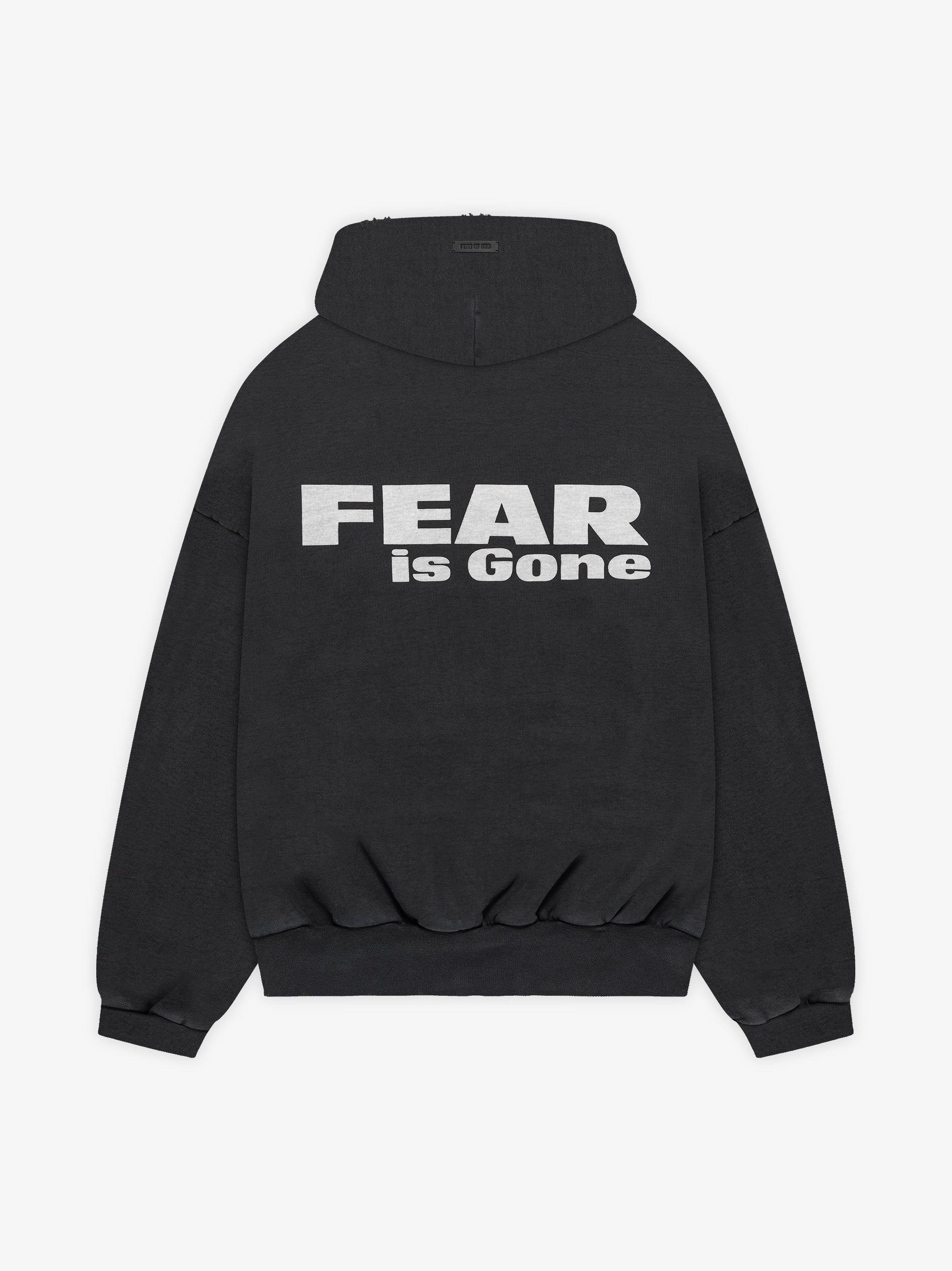 The Fear is Gone Hoodie is made in the USA from 100% cotton fleece and features a vintage fit for a shrunken, cropped style. It showcases hand-printed graphics, garment wash and sunfade treatment, giving it an authentic, time-worn appearance. Additional details include a kangaroo pocket, rib-knit cuffs and waist hem.