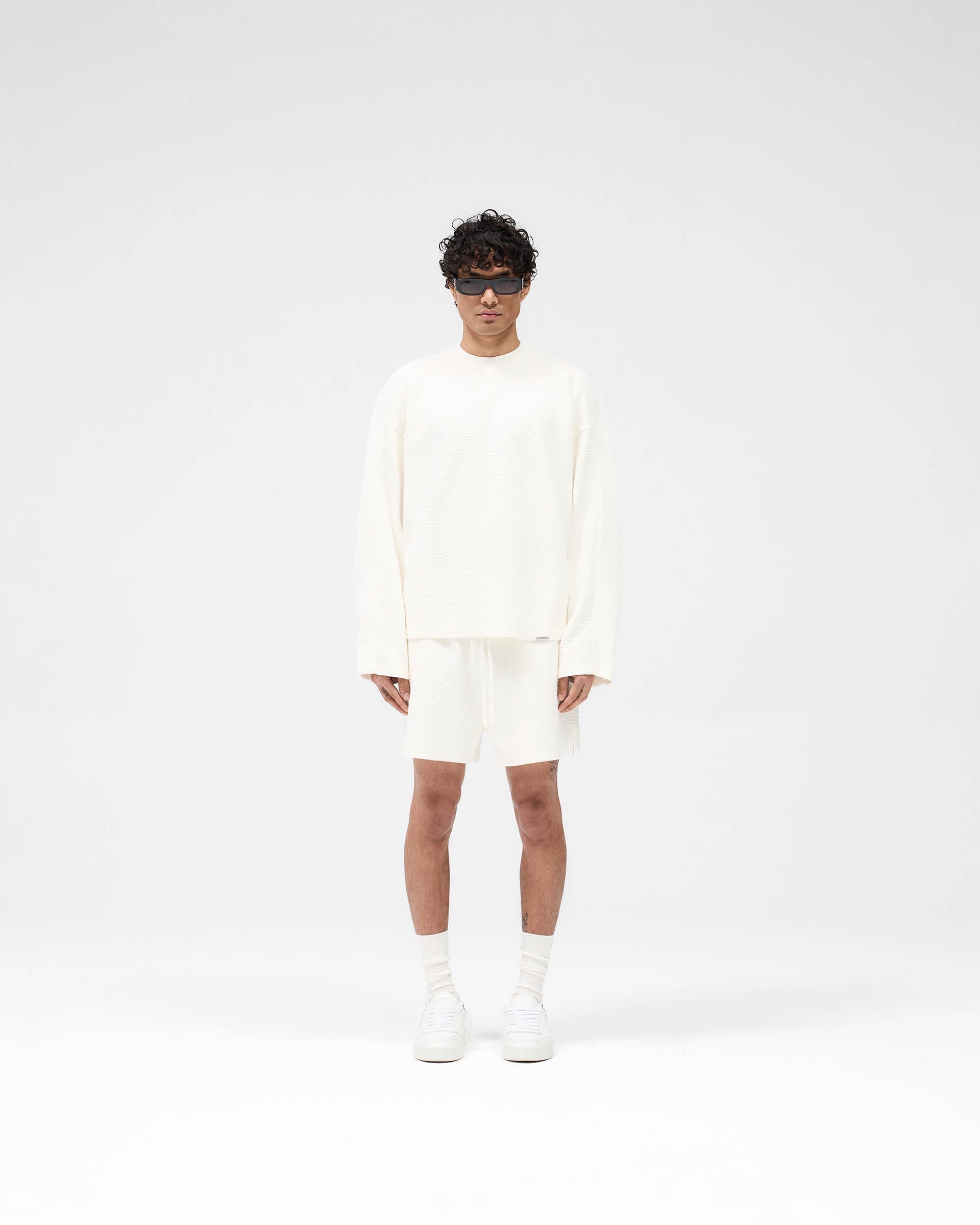 Introducing the Waffle Long Sleeve T-Shirt in Flat White, a refined staple crafted from 100% cotton with a premium interlock waffle fabric for texture and durability.