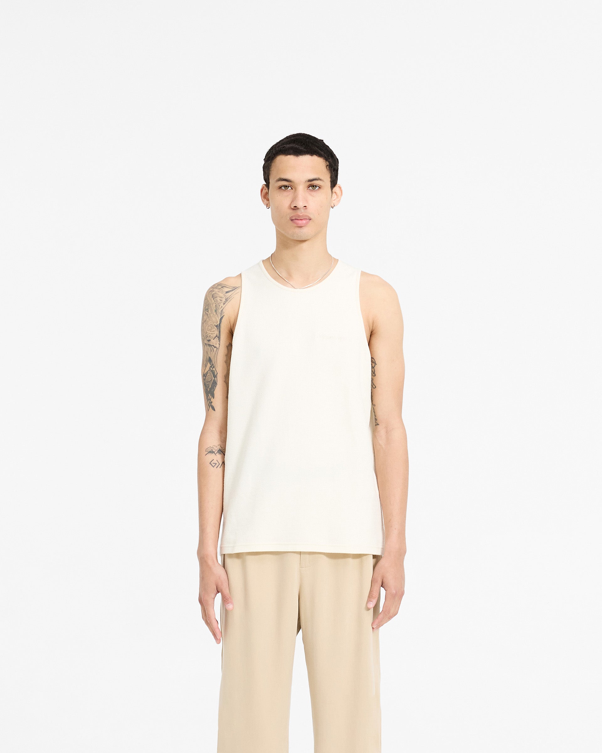 Introducing the Waffle Vest in Antique White, a regular fit vest with a regular wash. Crafted from a luxury cotton, the waffle vest is finished with small Represent embroidery and metal bar logo to the hem.