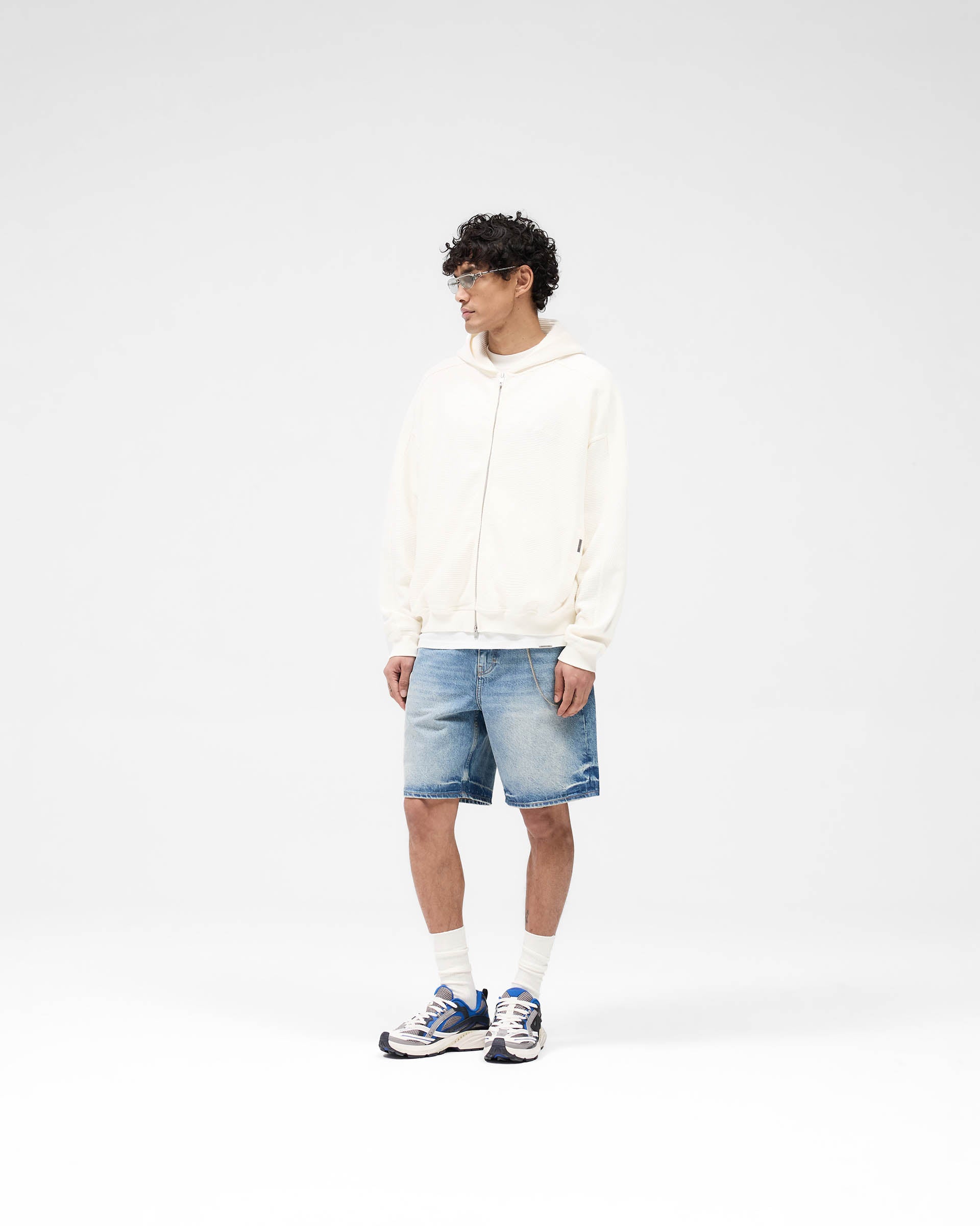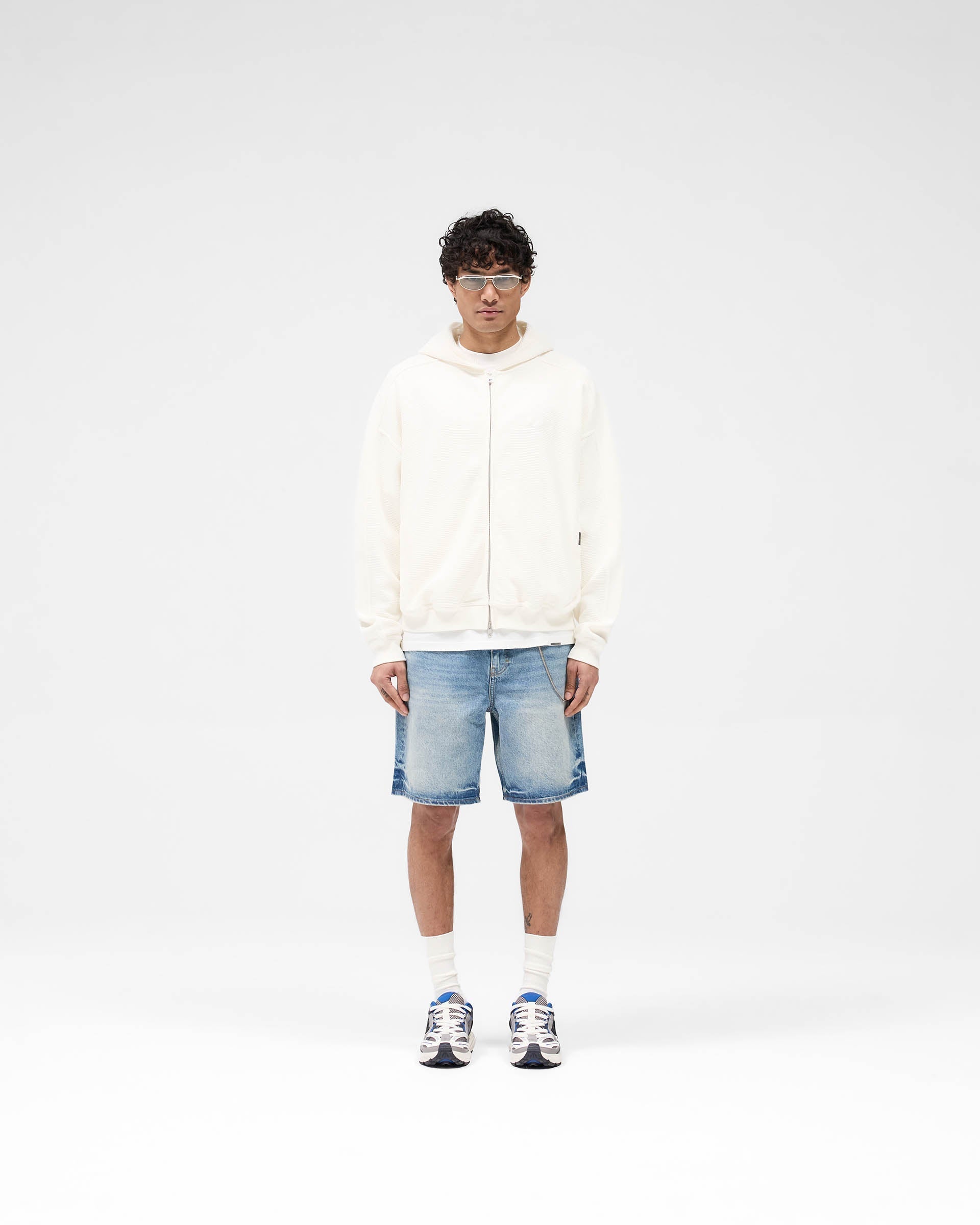 Waffle Zip Through Hoodie - Flat White