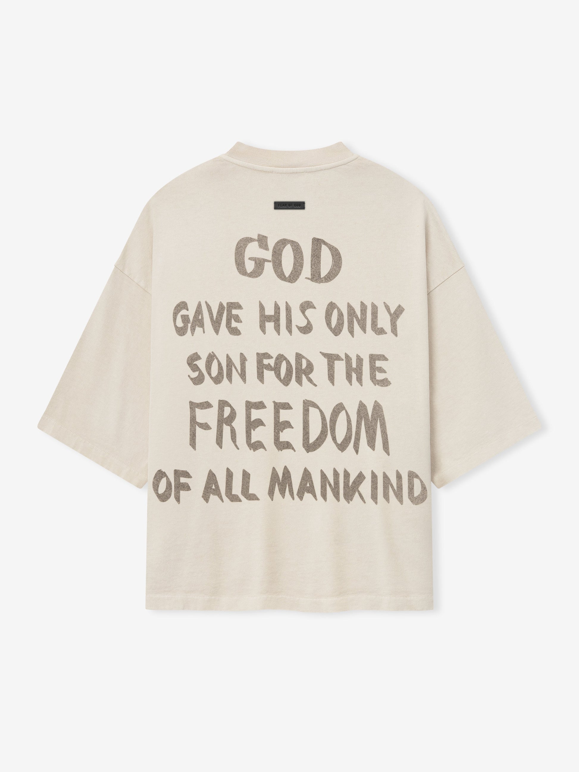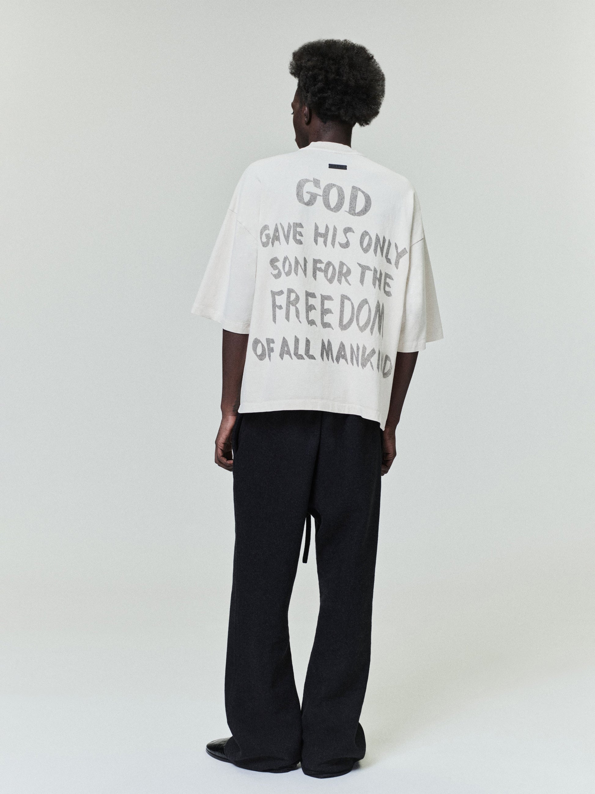 The We Won't Move Tee Tee is crafted in the USA from 100% heavyweight cotton jersey and features a garment wash with a sunfade treatment for an authentic vintage appearance. The hand-printed graphics are inspired by the civil rights movement. This rib-knit crewneck tee has a relaxed fit with drop shoulders and 3/4 sleeves. A Fear of God label is stitched at the back collar.