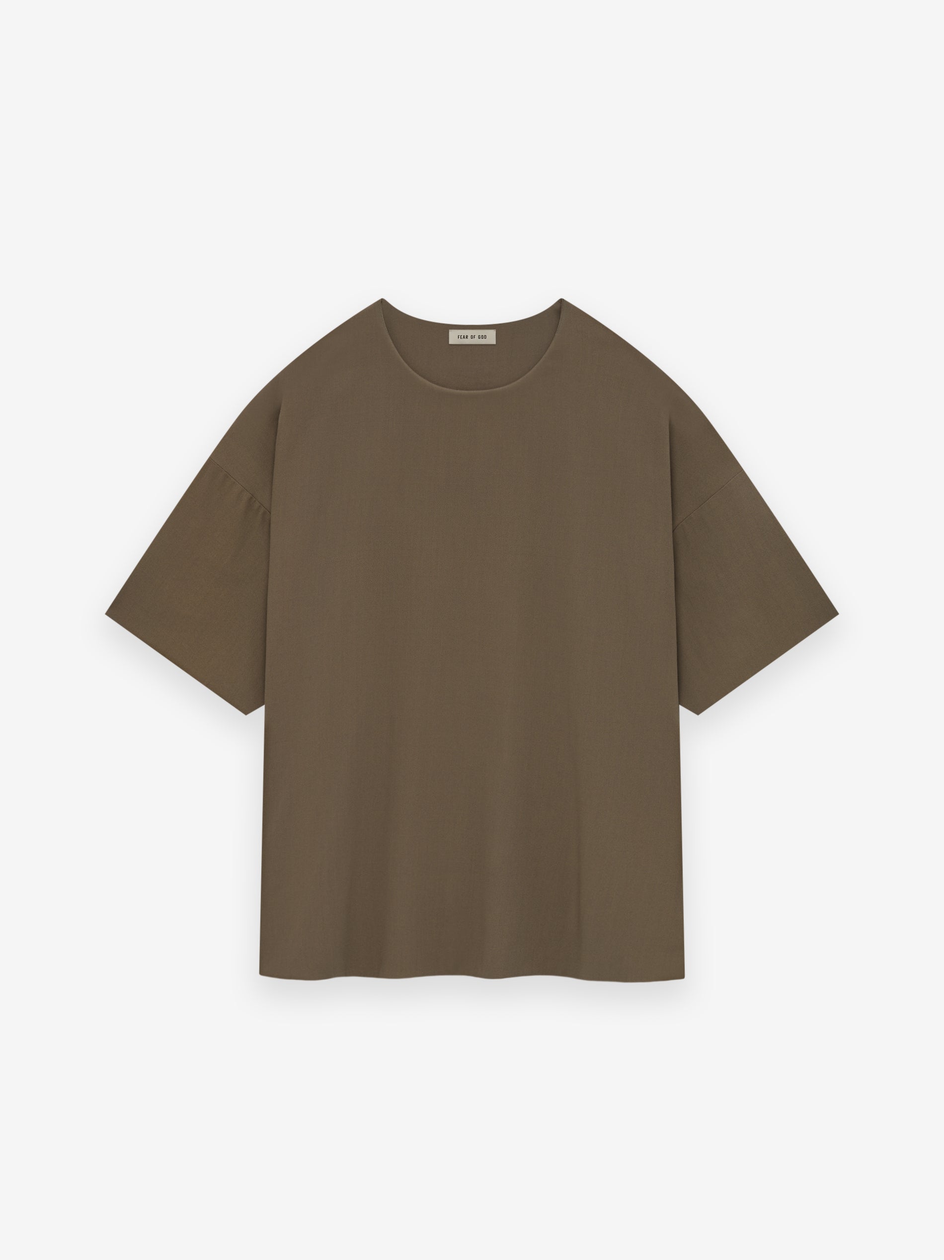 The Double Layer Relaxed Tee is made in Italy from a double-layered, wool crepe blend to balance the drape and structure. The voluminous silhouette combines elegance and comfort. A Fear of God leather label is stitched on the center front.